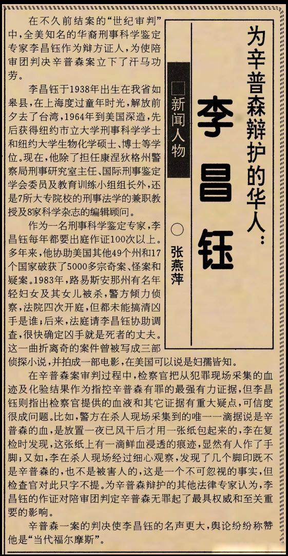 李昌钰是华东谈主圈的天花板,不仅因为他断案无敌,更因为他在西方主流警界,为华东谈主闯出了一派天。